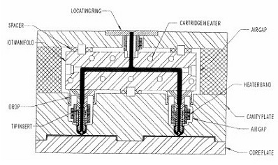 سیستم های گرمای خارجی توانایی ارائه کمترین افت فشار را در مقایسه با سیستم های دیگر به جز راهگاه های گرم عایقی، دارد. کانالهای جریان به شکل استوانه ای متقاطع هستند و معمولا قطری بزرگتر از سیستم های راهگاه سرد دارند. کانال جریان استوانه ای کارآمدترین شکل برای جریان گدازه است. از آنجا کهخنک کردن راهگاه و بازسایی(regrind) مسائل مربوط به راهگاه های گرم نیستند، استفاده از قطر بزرگتر مجاز است. قطر بزرگتر و این واقعیت که هیچ گسترش لایه منجمد در سیستم راهگاه وجود ندارد ، هر دو باعث افت فشار کم نسبی این سیستم ها می شود.